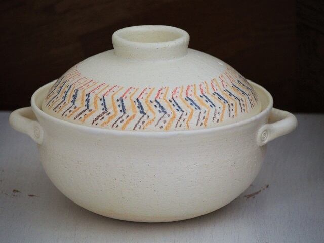パステル画でカラフルにしあげた土鍋です